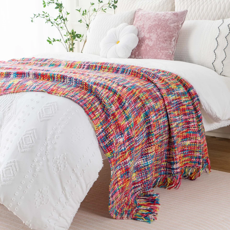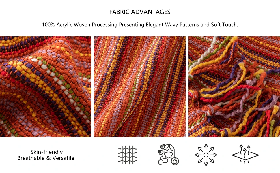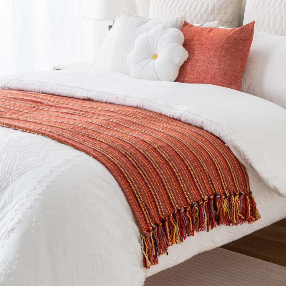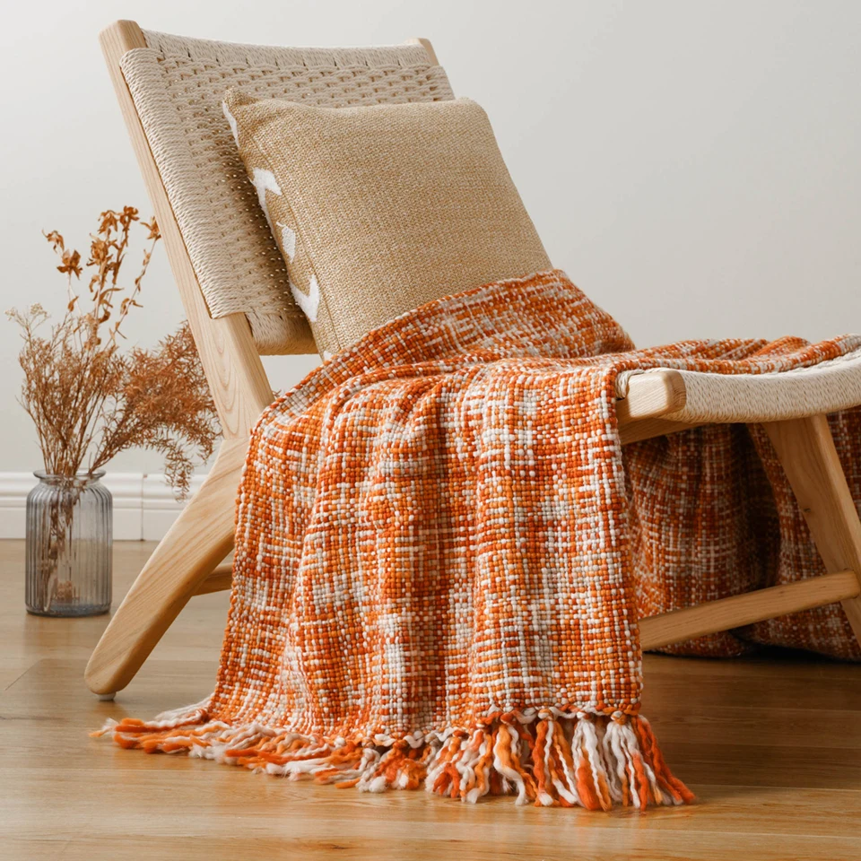 Stylish Orange Throw Blanket - Multi-Use for Sofa, Bed & Decor - 100% Cotton - Machine Washable