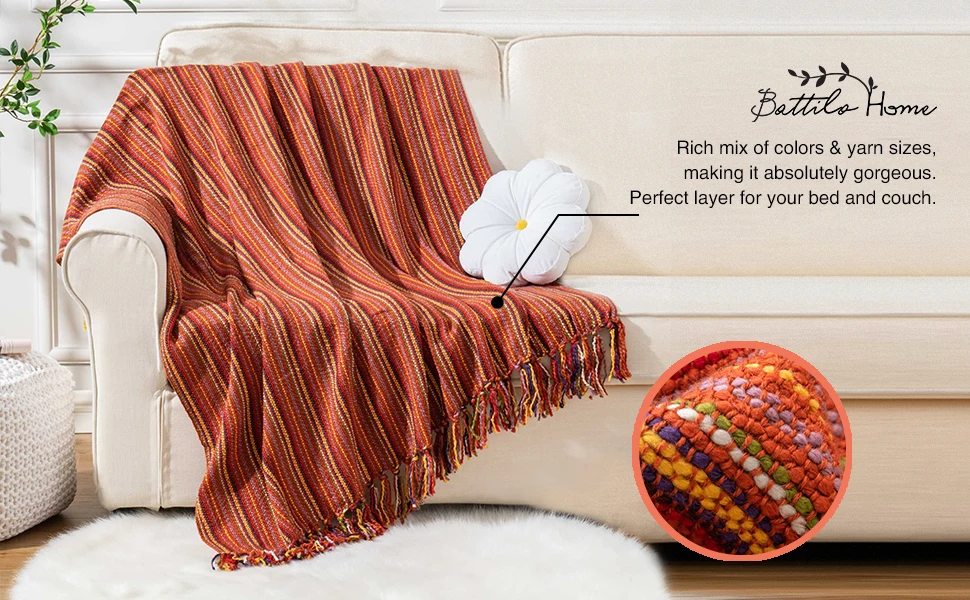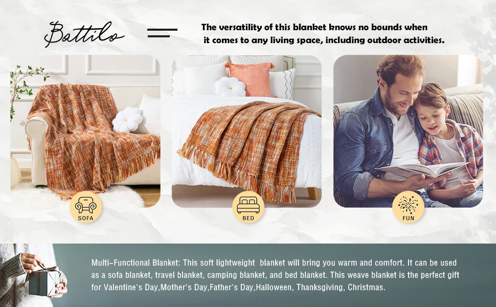 Description:Introducing the Battilo Orange Throw Blanket - the perfect addition to your home decor! Made from high-quality cotton, this thick and warm blanket is versatile and can be used as a throw, sofa cover, carpet, or even a window mat. The beautiful patterns add a touch of elegance to any room and showcase your exceptional taste. With a size of 127x152cm, this blanket is suitable for various furniture, making it a must-have for any home. Plus, it's machine washable for easy maintenance. Don't miss out on this limited-time best seller - order now and elevate your living space! Say goodbye to cold nights and boring decor - with the Battilo Orange Throw Blanket, you'll stay warm and stylish all year round.